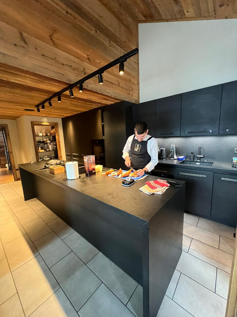 At dinner time in Courchevel or Méribel, savour a full menu five evenings out of seven, as you would at the table of a gourmet restaurant. Canapes, starter, main course, cheese, dessert. All the flavours are prepared by your private chef, from authentic Savoyard cuisine to contemporary dishes. Enjoy them with our wines and champagne, which are carefully selected from our extensive menu, to blend perfectly with your tastes and dishes offered.